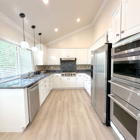 Modern kitchen with granite countertops and stainless steel appliance